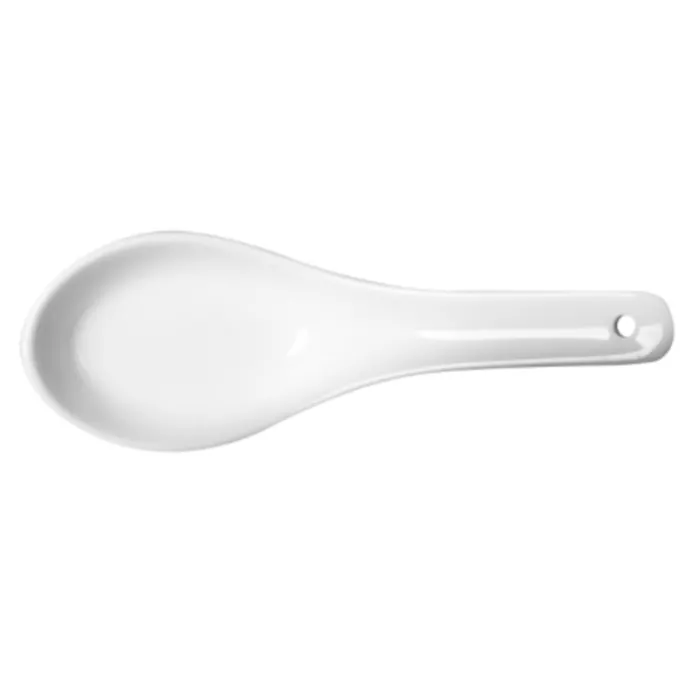 5" Spoon with no hole. Durable China Collection. Cameo Chinaware. Used for tasting or soups.