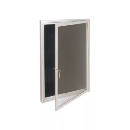 - Locking glass door on hinges provides a professional appearance, deters unauthorized access to messages