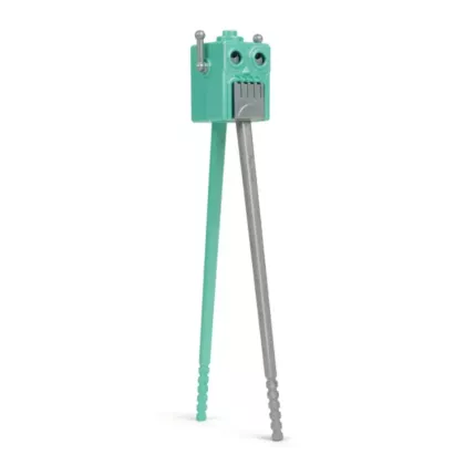 Overview bring high-tech fun to mealtime! This retro-inspired robot opens and closes its jaw and rolls his eyes with every squeeze, making each bite an adventure. These kid-friendly, hinged chopsticks are crafted from durable, food-safe ABS plastic.