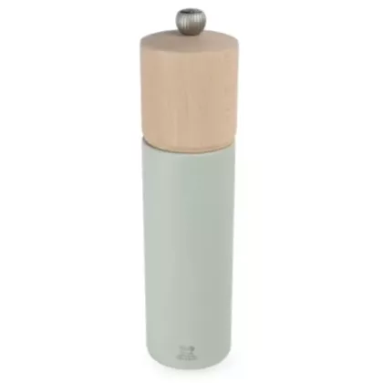 The Peugeot Boreal 8.25" Salt Mill, Sage Green combines sustainable craftsmanship with nature-inspired design. The soothing sage green finish complements the rich, dark tones of the matching pepper mills in the Boreal collection, creating a harmonious set that adds a personal touch to any table or kitchen.