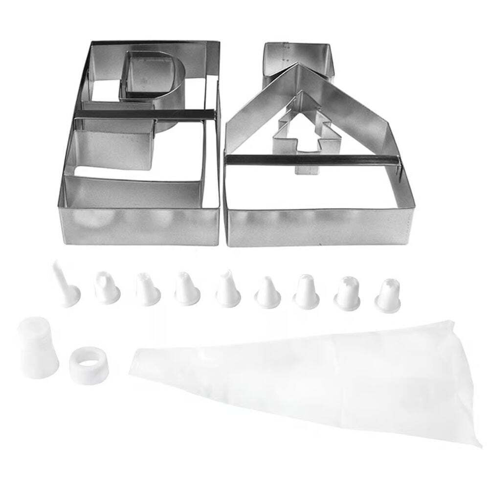 • Complete Kit: Includes 7 cutters, cardboard base, recipes, instructions, icing bag, coupler, and tips.