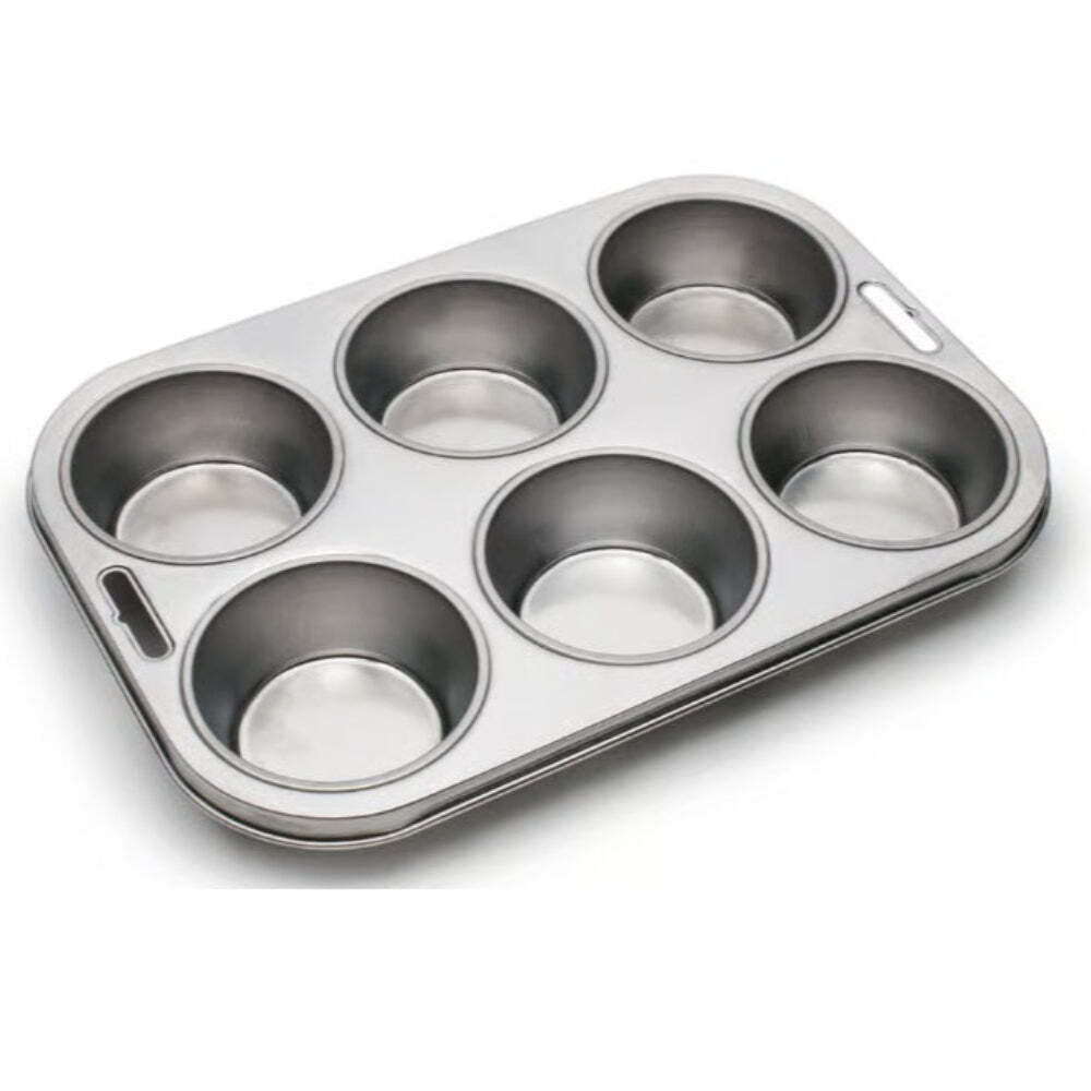 Bake delicious muffins and cupcakes with this Six Cup Muffin Pan, crafted from durable stainless steel for long-lasting performance. Its elegant, non-reactive surface resists stains, scratches, and rust, while offering consistent heat distribution for evenly browned results every time.