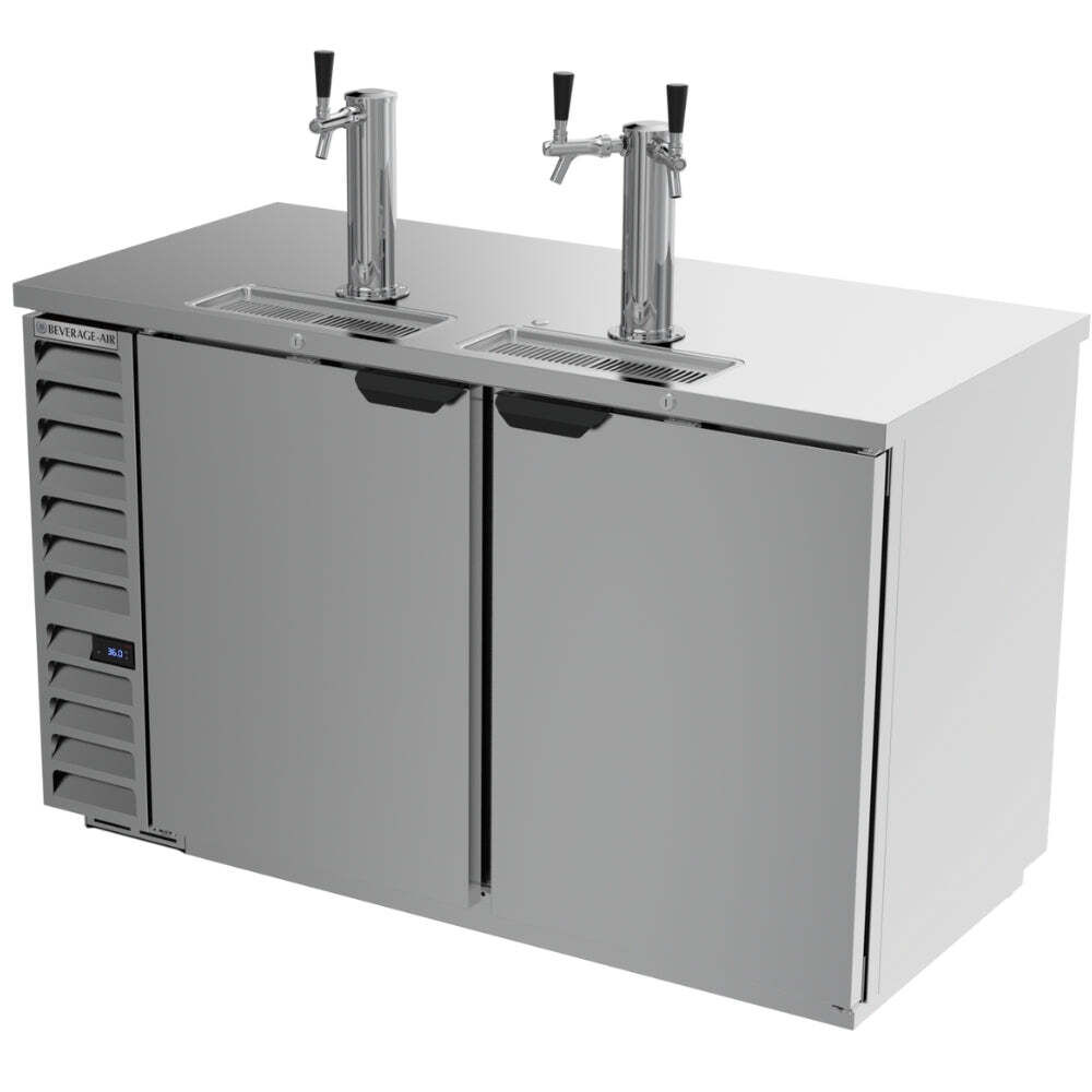The Beverage-Air 59" Direct Draw Dispenser 2 Taps & 2 Keg Capacity wit 2 Solid Doors, Stainless Steel Exterior is a high-performance, dual-tower refrigeration unit designed for commercial bars, breweries, and restaurants. Featuring advanced cooling technology and a 3-in-1 draft solution, this unit ensures the perfect pour every time, while maintaining energy efficiency and durability.
