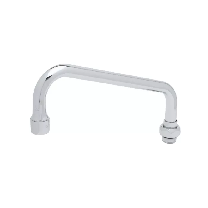 The T&S Brass 8" Swing Nozzle with a stream regulator outlet is designed for reliable performance and efficient water flow in commercial settings. Certified to ASME A112.18.1/CSA B125.1, NSF 61-Section 9, and NSF 372 standards, it ensures both quality and compliance.