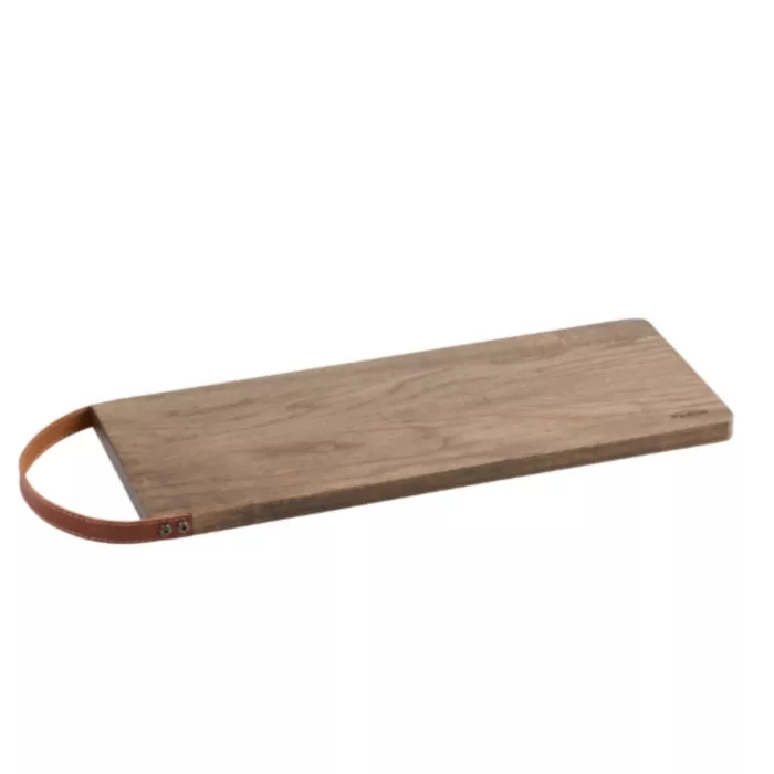Perfect for serving cheeses, charcuterie, and fresh bread, it offers both style and functionality. The artificial leather handle not only enhances its elegant presentation but also makes it easy to carry and store.