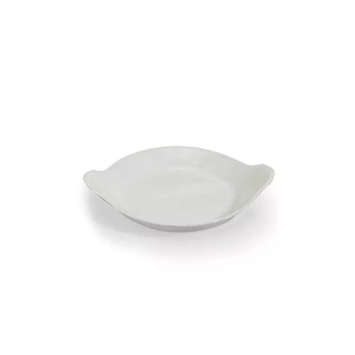 The Bia Cordon Bleu Au Gratin Dish, White, a refined porcelain piece for baking and serving. With an 8-inch diameter and 6 oz capacity, this au gratin dish blends elegance and versatility, perfect for individual portions or side dishes in any kitchen.