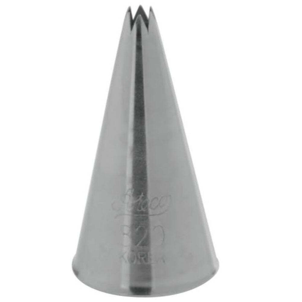 This small open star tip creates detailed designs with sharp edges, making it ideal for precision work. The Ateco Star Tip is perfect for mini rosettes, shell borders, and fine embellishments on cakes, cupcakes, and cookies.