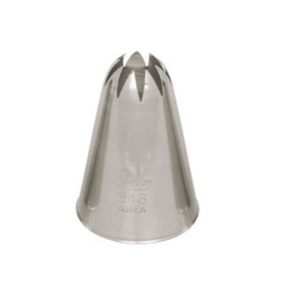 The Ateco is a large closed star tip designed to create deeply ridged, defined swirls and rosettes. Its wide opening makes it perfect for bold decorations on cakes, cupcakes, and pastries, adding texture and visual appeal.