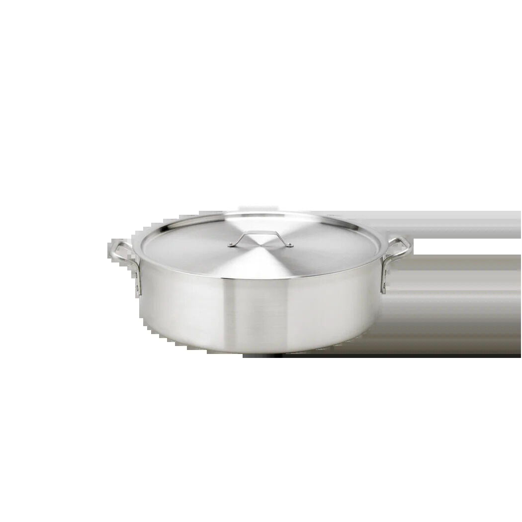 The Thermalloy Brazier with Cover is designed for slow cooking, braising, and simmering, making it an essential tool for commercial and home kitchens. Its durable aluminum construction and thick base ensure even heat distribution for consistent cooking results.