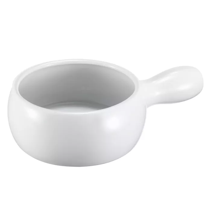 The Onion Soup Bowl with Handle is a stylish and practical addition to any kitchen, offering durability and a traditional design that enhances both home and restaurant dining.
