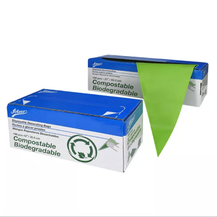 These eco-friendly disposable decorating bags are perfect for piping frosting, icing, and more. Made from biodegradable PBAT PLA cornstarch material, they combine durability with environmental responsibility.