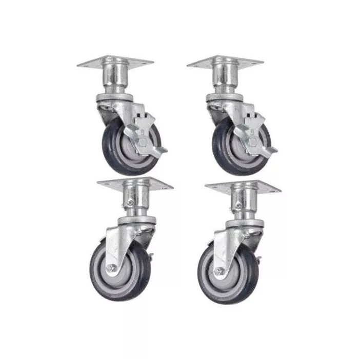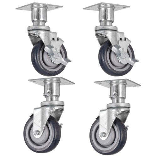 Whether you're outfitting prep tables, refrigerated units, or utility carts, this caster set offers the strength and flexibility you need for easy movement and secure placement. Perfect for dynamic work environments where mobility and stability matter.