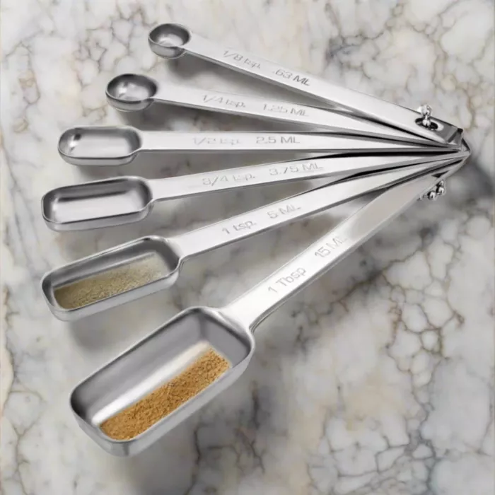 Overview, a durable stainless steel set for precise ingredient measuring. Designed for convenience, this measuring spoon set stays organized with a sturdy metal ring, perfect for any kitchen.