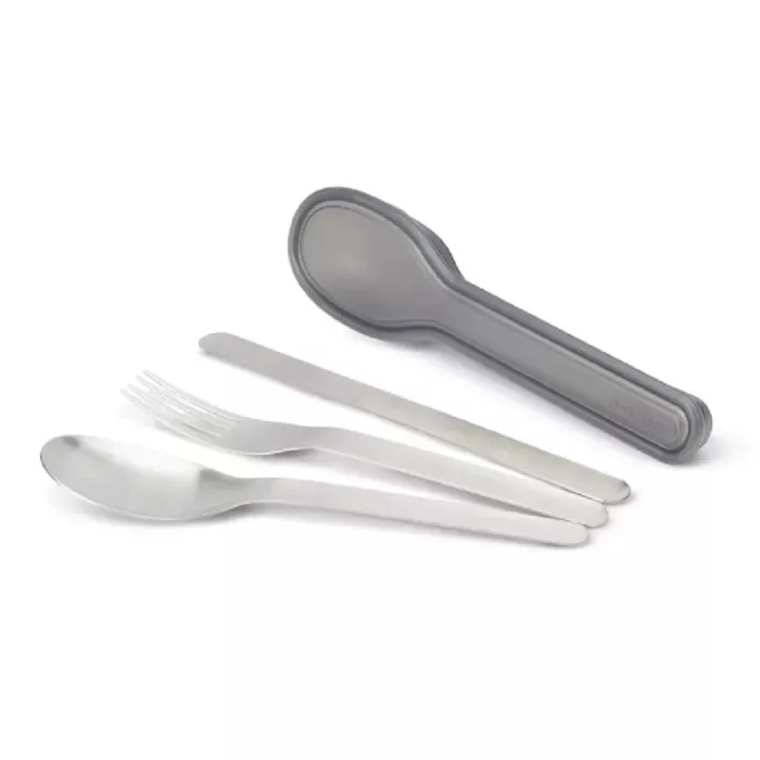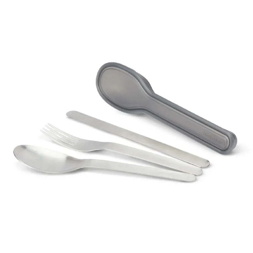 The Black + Blum Travel Cutlery Set in Steel is a durable and practical solution for eating on the go. Its three-piece design includes a spoon, fork, and knife, all made from high-quality stainless steel and neatly nesting into a compact, snap-close case for effortless transport.
