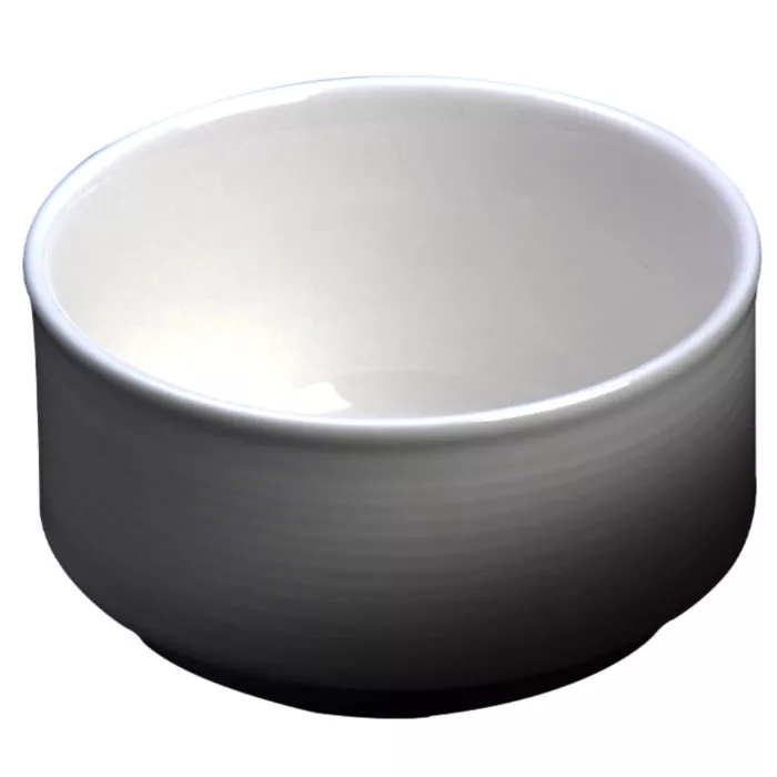 Present your soups, sides, or sauces with modern elegance using the Cameo Royalmont Three Inch Soup Cup. Designed by Cameo China, this compact ceramic cup offers the perfect blend of traditional craftsmanship and sleek, space-saving design. With its vitrified finish and stackable form, it’s a must-have for any restaurant, catering service, or fine dining experience looking for style and practicality.