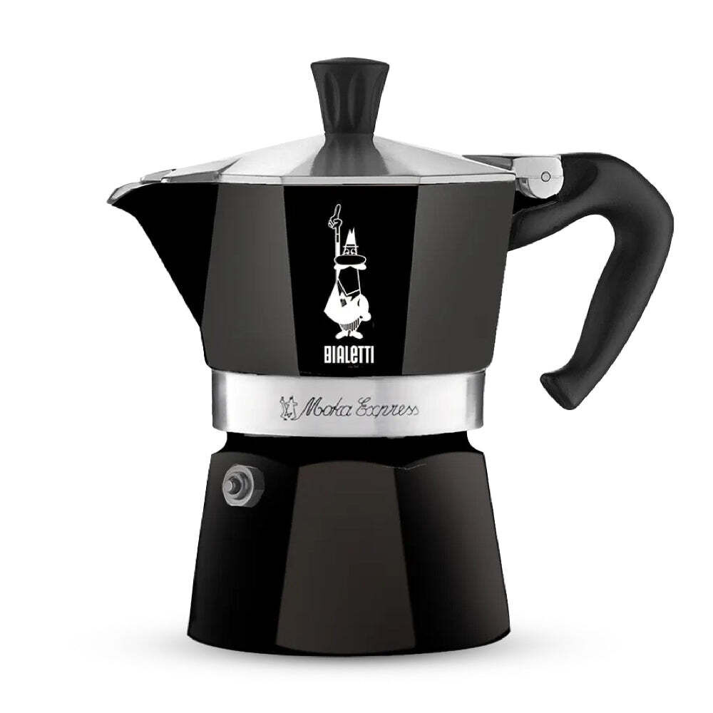 Brew authentic Italian espresso at home with the Bialetti Nero 6-Cup Moka, combining style, functionality, and durability in a sleek black design.