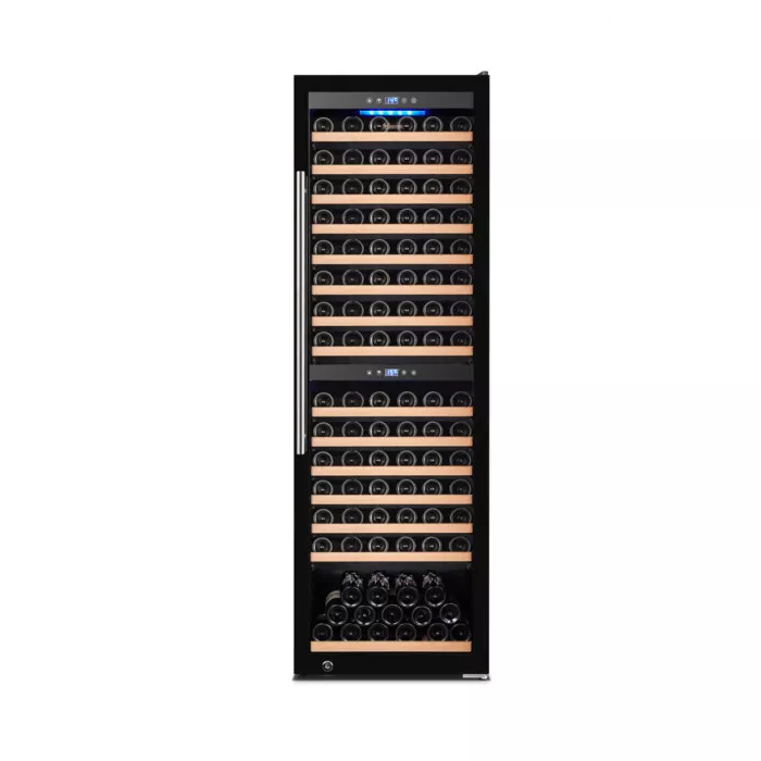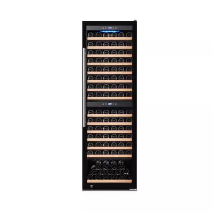 Dual Temperature Zones: Maintain two independent temperature zones ranging from 3°C – 22°C (37.4°F – 71.6°F)—perfect for storing red and white wines at their ideal serving conditions.