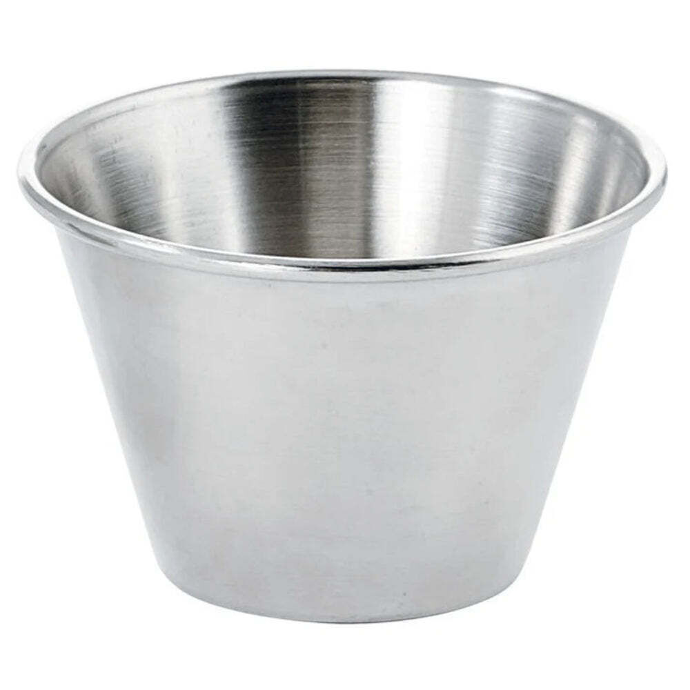 A practical and durable solution for serving sauces and small portions, these stainless steel cups combine convenience with commercial-grade reliability.