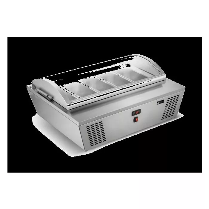 The Versa Display Series FGCM-5P Gelato Countertop Freezer is a compact and stylish solution for showcasing gelato, ice cream, and frozen desserts. With a curved folding glass lid, stainless steel exterior, and digital temperature controls, it delivers both durability and eye-catching presentation for your shop, café, or restaurant.