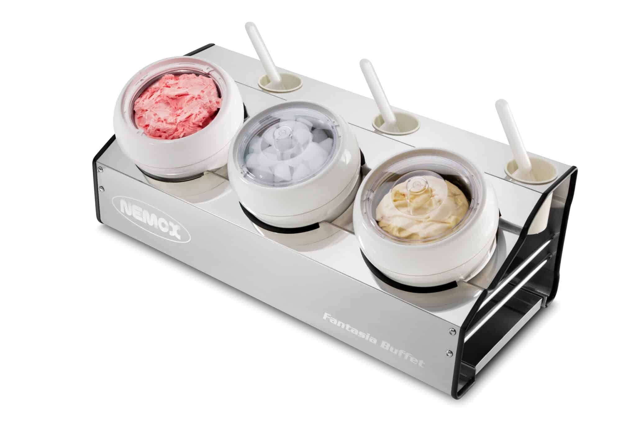 The Nemox Fantasia Buffet is a compact, versatile chilled display system designed to keep gelato, sorbet, and a variety of other foods at the ideal serving temperature — without electricity. Perfect for small shops, cafés, catering services, and buffets, this innovative solution makes it easy to present cold items attractively for up to 2 hours on the countertop.