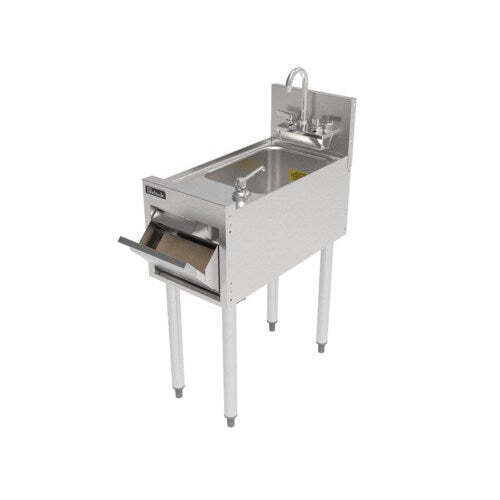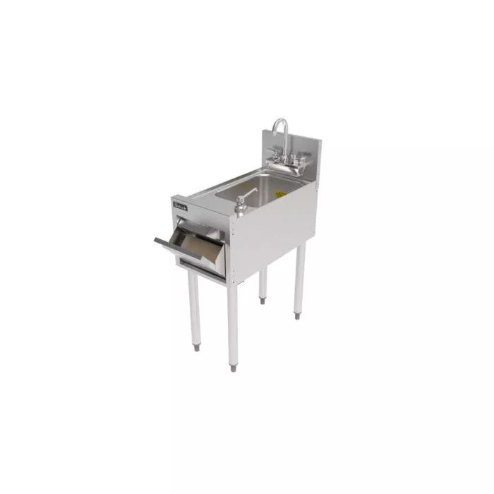 Create a sanitary, efficient, and organized handwashing station in your bar or commercial prep area with the Perlick 12" Hand Sink with 16 oz. Pump Soap Dispenser. This compact underbar unit is engineered for high-volume foodservice environments where cleanliness, accessibility, and durability are essential. Featuring a deep drawn stainless steel sink bowl, integrated soap and paper towel dispensers, and a sturdy stainless steel frame, it delivers long-lasting performance while minimizing footprint.