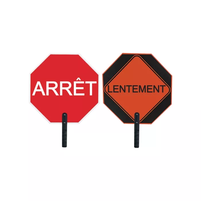 Double-Sided "Arrêt/Lentement" Traffic Control Sign
