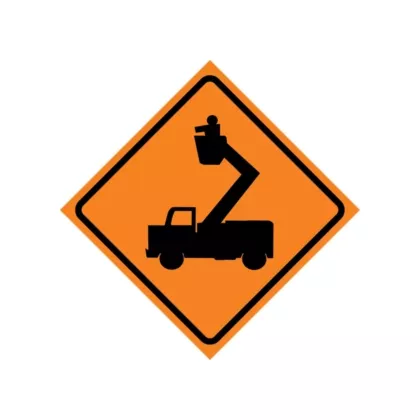 Man in Elevated Bucket Roll-Up Traffic Sign