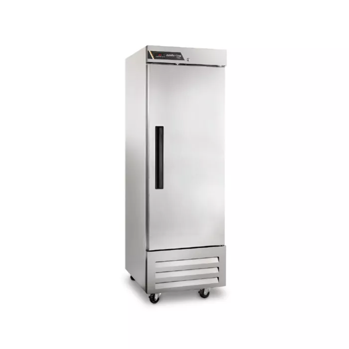 A bottom mounted, self-contained, balanced refrigeration system using environmentally friendly, non-flammable R-450A refrigerant is conveniently located behind the one piece louver assembly. It features an easy to clean front facing condenser, capillary tube metering device, and an air-cooled hermetic compressor. A 9’ cord and plug is provided. Standard operating temperature is 36°F to 41°F.