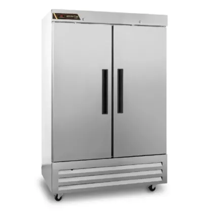 A bottom mounted, self-contained, balanced refrigeration system using environmentally friendly, non-flammable R-448A refrigerant is conveniently located behind the one piece louver assembly. It features an easy to clean front facing condenser, thermal expansion valve (TXV) metering device and air-cooled hermetic compressor. A 9’ cord and plug is provided. Standard operating temperature is -1°F to 2°F.