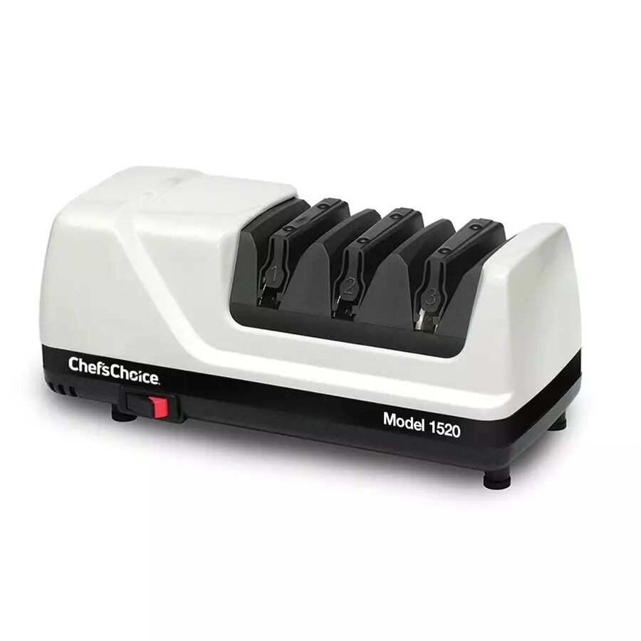 Incorporating the highly precise angle controls of the patented 3-Stage AngleSelect® system and the Diamond Hone® technology that has made Chef’sChoice sharpeners world renowned and the choice of leading chefs worldwide, the Model 1520 sharpener is the perfect solution for restoring and recreating razor sharp edges on all types of quality cutlery. It features optimum versatility in providing the perfect, incredibly sharp edge for every type of knife.