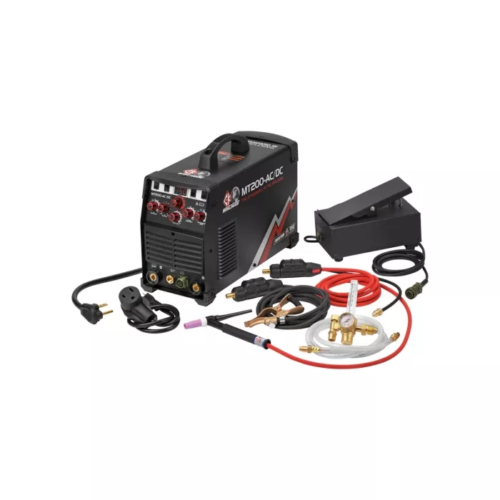 - Includes: CK17 Flex-Head Gas-Cooled TIG Torch with 12.5' Super Flex ™ Cable, Dinse® Connector, AK-3 Accessory Kit, Foot Pedal Amperage Control, Ground Clamp with 12.5' Cable, Single-Flow Regulator, 6' Argon Hose, 220V to 115V power adapter