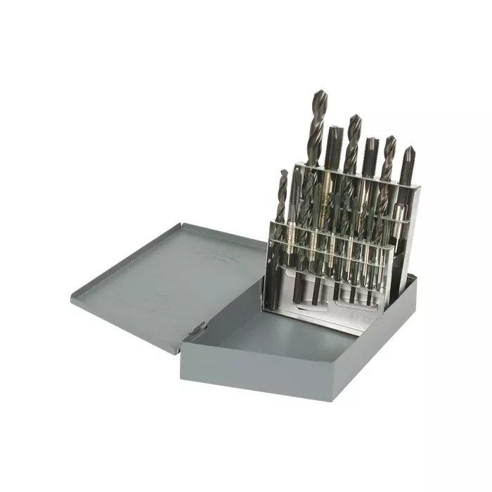 | Includes | Tarauds de 2,05 mm, 2,5 mm, 2,9 mm, 3,3 mm, 4,2 mm, 5 mm, 6,7 mm, 8,5 mm et 10,2 mm, avec tailles M2.5 x 0.45, M3 x 0.5, M3.5 x 0.6, M4 x 0.7, M5 x 0.8, M6 x 1, M8 x 1.25, M10 x 1.5, M12 x 1.75 et mallette en métal |