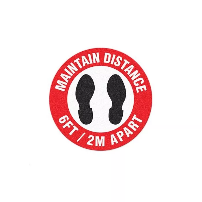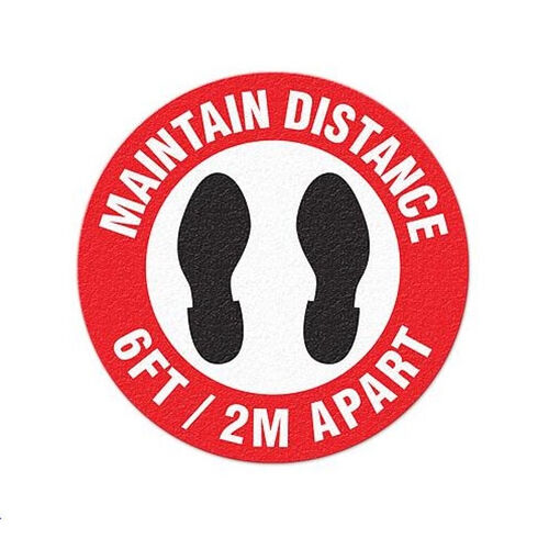High visibility floor sticker to help customers maintain the recommended distance. Durable and slip-resistant. High quality adhesive adheres to most smooth, clean and dry floors.
