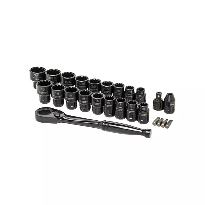 - Fits six fastener types: Hex, Square, 12 pt., E-Torx®, Rounded Hex, and Spline