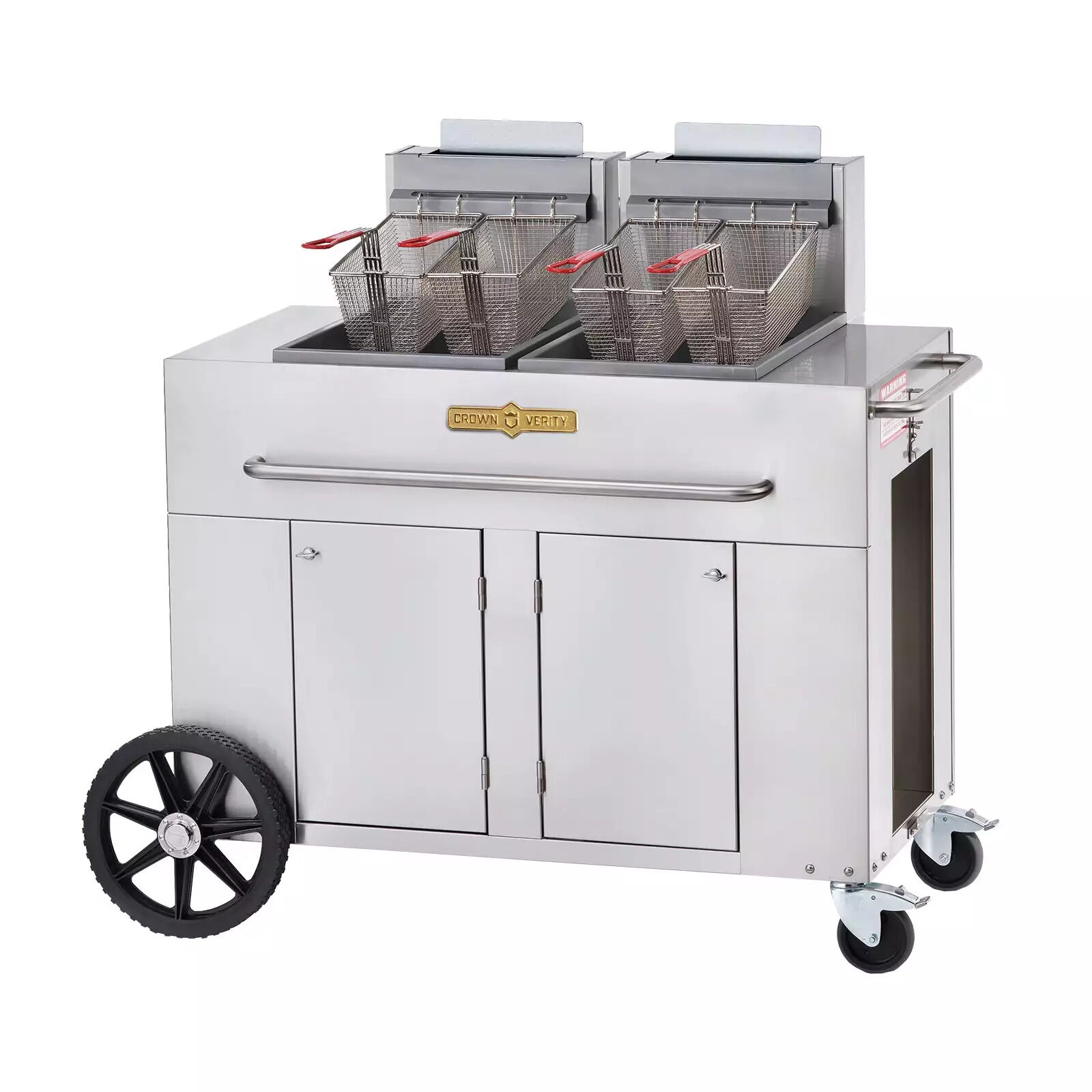 Bring all the functionality of your indoor kitchen outdoors with a compact and sturdy Crown Verity mobile fryer. Our Pro fryers are designed to cook high volumes of product in a short period of time. The fryers are for outdoor use only. With 14” wheels, they are easy to move, making them ideal for caterers, party rentals and special events.