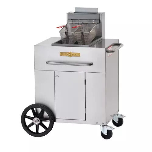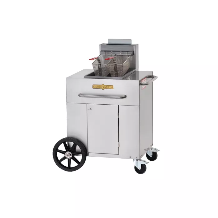 Bring all the functionality of your indoor kitchen outdoors with a compact and sturdy Crown Verity mobile fryer. Our Pro fryers are designed to cook high volumes of product in a short period of time. The fryers are for outdoor use only. With 14” wheels, they are easy to move, making them ideal for caterers, party rentals and special events.