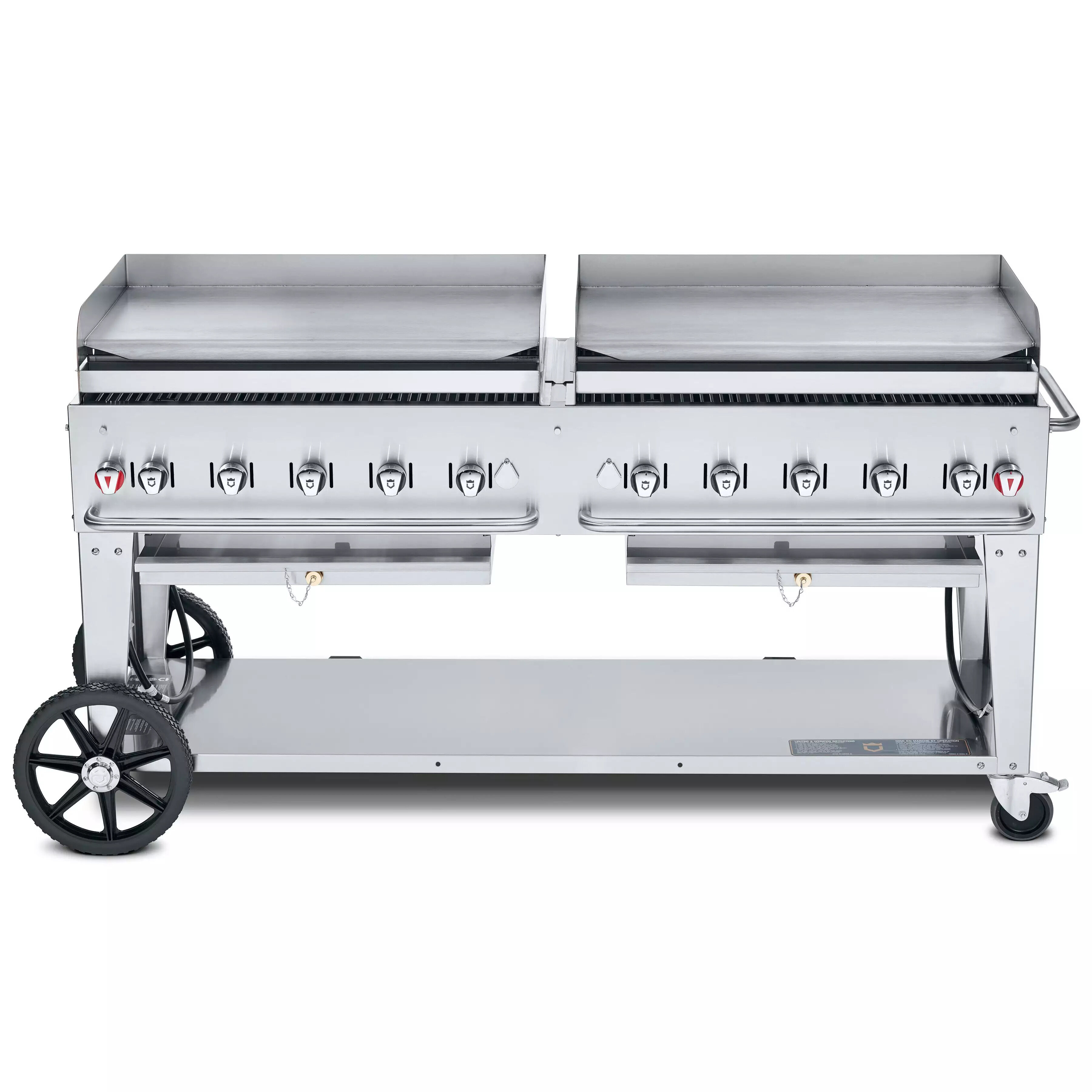 Gas griddles constructed of 304 stainless steel including bodies, burners and all fasteners