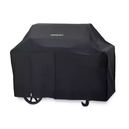 The Crown Verity BC-60-V grill cover is made of vinyl for durability in outdoor use.