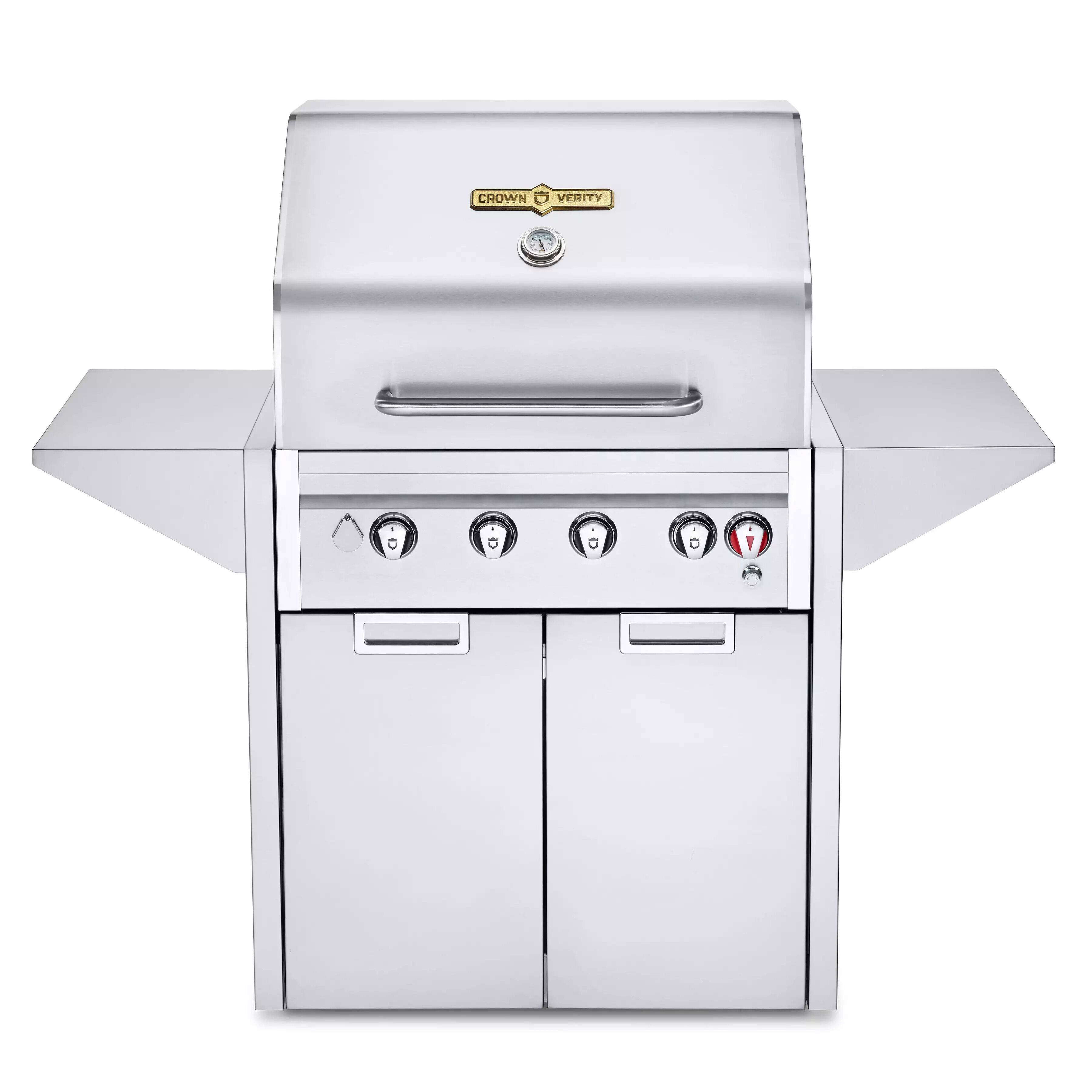 The Crown Verity Estate Elite 30" BBQ/Charbroiler is a top-of-the-line outdoor cooking machine perfect for the backyard chef. This propane-powered grill features a spacious 30-inch cooking surface, ideal for grilling up burgers, steaks, and more for a crowd. The roll dome and bun rack add versatility to your grilling repertoire, allowing you to roast and bake as well. The two-door cabinet provides ample storage space for your grilling tools and accessories. Whether you're hosting a backyard barbecue or just looking to upgrade your outdoor cooking setup, the Crown Verity Estate Elite is the perfect choice.
