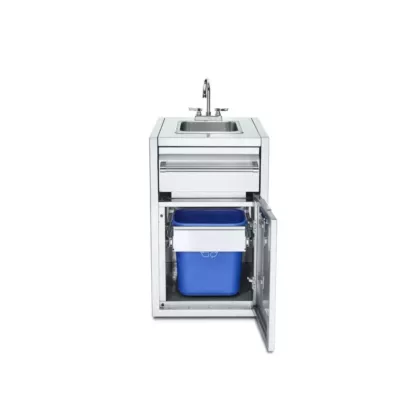 The Crown Verity Infinite Series Small Built-In Cabinet with Sink and Garbage Holder is the perfect addition to any outdoor kitchen or catering setup. This compact unit features a durable stainless steel construction, making it resistant to rust and corrosion. The built-in sink is perfect for washing dishes and preparing food, while the garbage holder helps keep your workspace clean and organized. The unit can be easily installed in a countertop or built into a custom enclosure, making it a versatile choice for any space. Whether you're hosting a backyard barbecue or catering a large event, this cabinet is sure to come in handy.