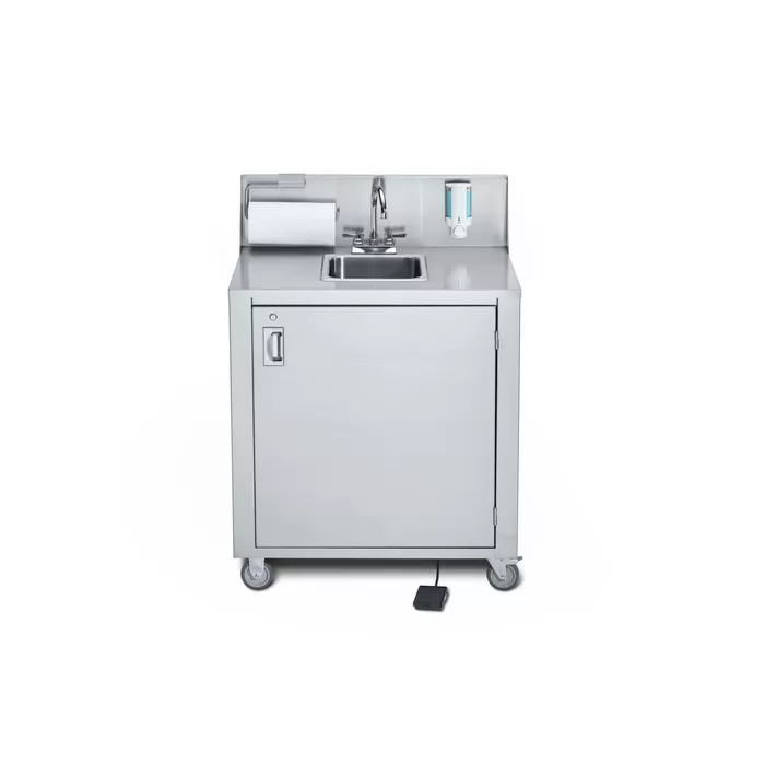 For indoor and outdoor functions, when hand-washing is a must! Shipped fully assembled, complete with removable fresh and waste water tanks, 12 foot cord, standard wall plug and city water and drain hookups.