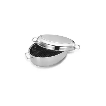 Use this covered roaster to cook a turkey, pork tenderloin or roast beef. Included with the roaster is a removable rack that drains away excess oils and fats for a healthier, low-fat meal. Place your poultry, pork or beef, along with any vegetables, on top of the rack and the juices will fall to the bottom of the pan - the makings of an excellent gravy. This classic roaster comes with a lid that doubles as a broiling pan or serving dish.