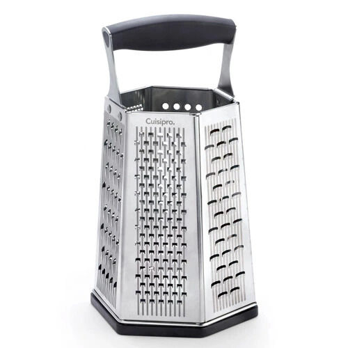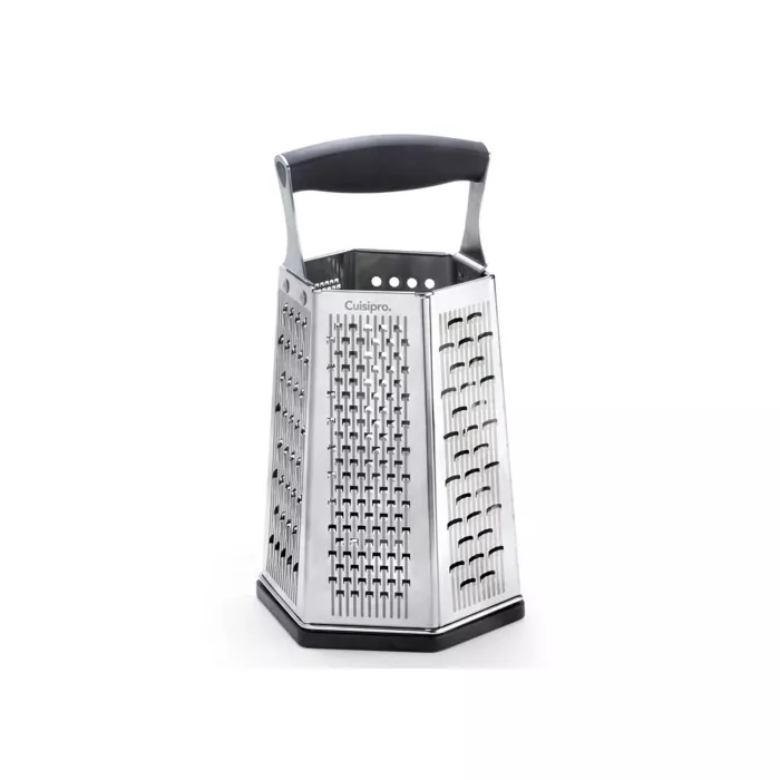 The Cuisipro Grater featuring Surface Glide Technology™ and soft-touch handle for easy grip. Exclusive to Cuisipro, Surface Glide Technology™ grooved grating surface takes etched graters to the next level by creating the perfect balance between ease of grating and maximum efficiency. The science behind this technology is based on the repeated grooved pattern that is spread evenly across the face of the grating surface, creating a larger cutting surface for food and allowing you to grate more with less effort.