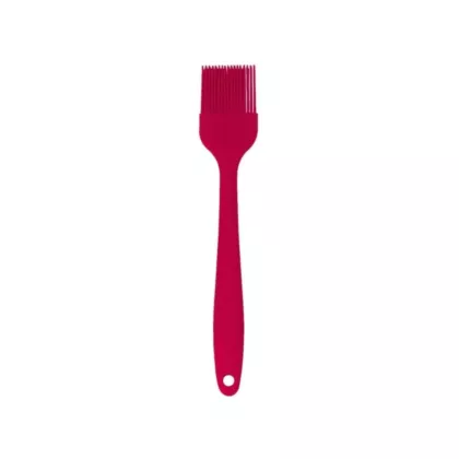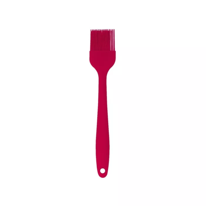 Basting Brush, red, silicone . 100% food safe and stain resistant. Heat resistant silicone up to 500 degrees F / 260 degrees C. Safe for use on non-stick cookware. Dishwasher safe.