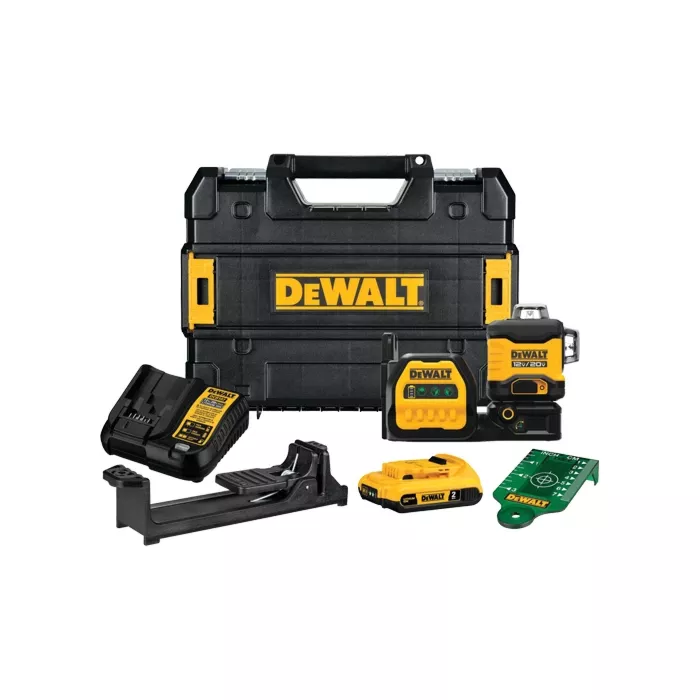 - Includes: 3x360 green laser, 20V Max 2Ah battery, Charger, Drop ceiling bracket, Target bard, TSTAK® case