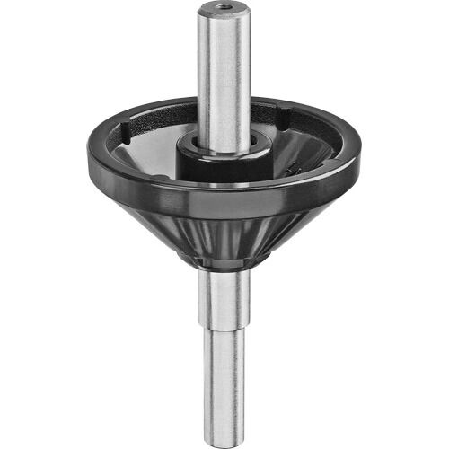 - Simply place pin in router collet, place cone on pin, and tighten screws on the sub base