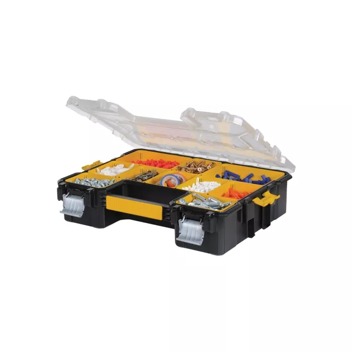 - Organizer with integrated carry handle for small parts organization