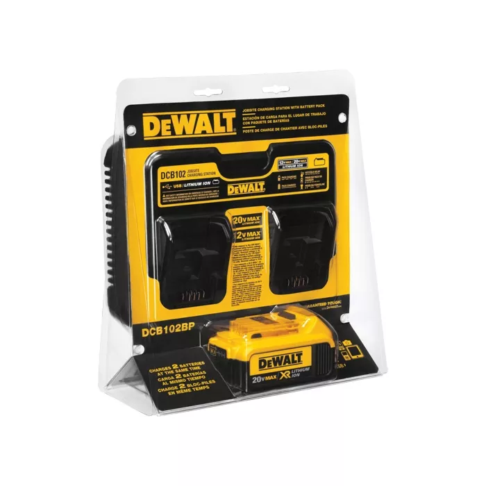 - Simultaneously charges 2 DEWALT® 12V - 20V Max lithium-ion batteries