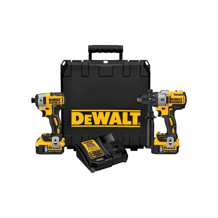 - Includes: (1) Max XR® 3-Speed 1/2" hammerdrill, (1) Max XR® 1/4" Impact driver, (2) Max XR® High capacity 5.0 Ah batteries, charger, (2) Belt hooks, (1) 360° Side handle, (1) Kit box