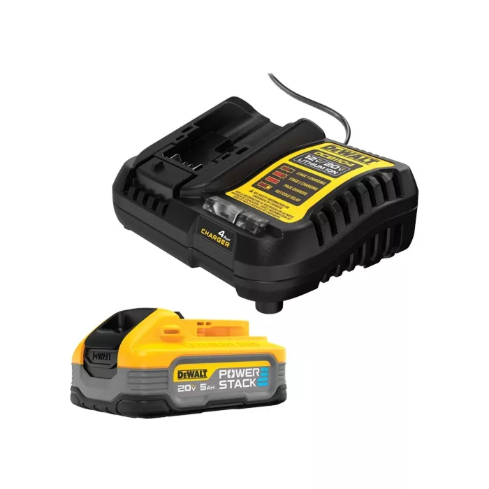 - This kit is conveniently packaged with 1 20V MAX DEWALT POWERSTACK™ 5 Ah Battery and 1 DEWALT 12V/20V MAX Charger